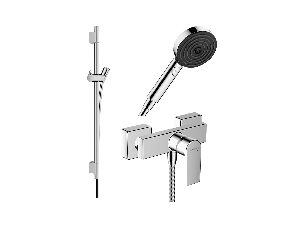 Pack mitigeur douche mécanique HANSGROHE Vernis Shape + Barre Unica S Puro + flexible + Pommeau Pulsify Select 3 jets chromé