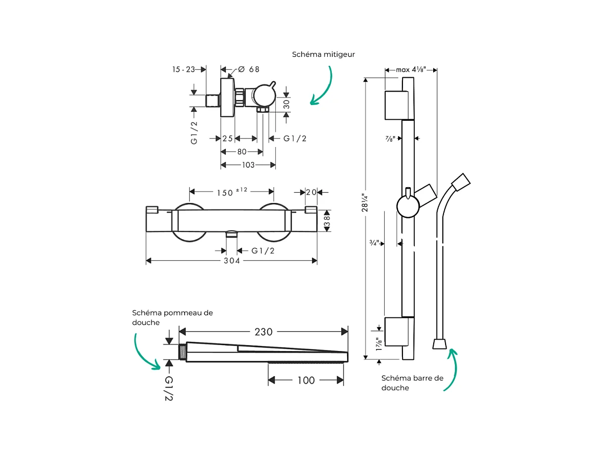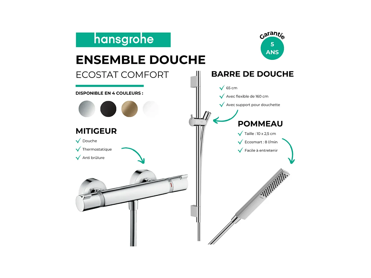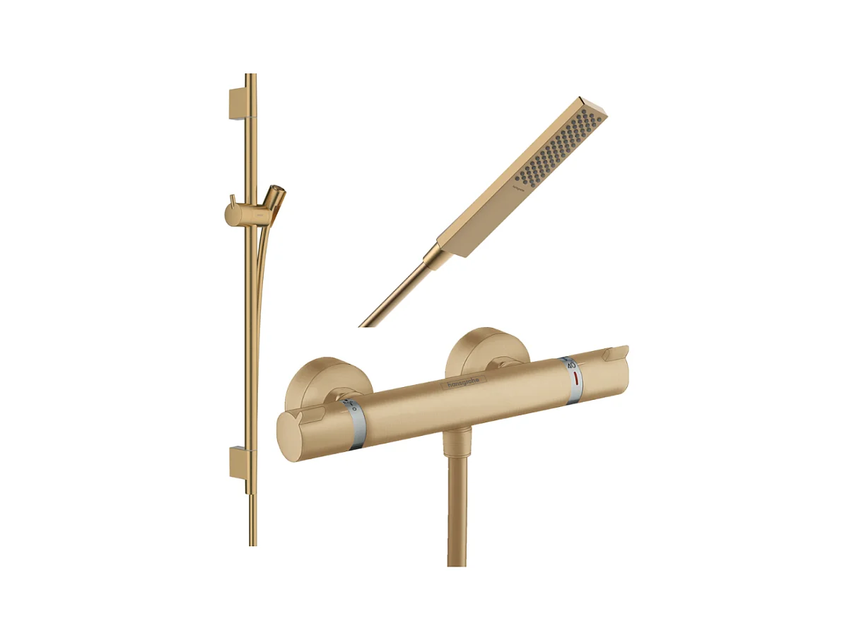 Pack mitigeur douche thermostatique HANSGROHE Ecostat Comfort + Barre Unica S Puro + flexible + Pommeau Pulsify E bronze brossé