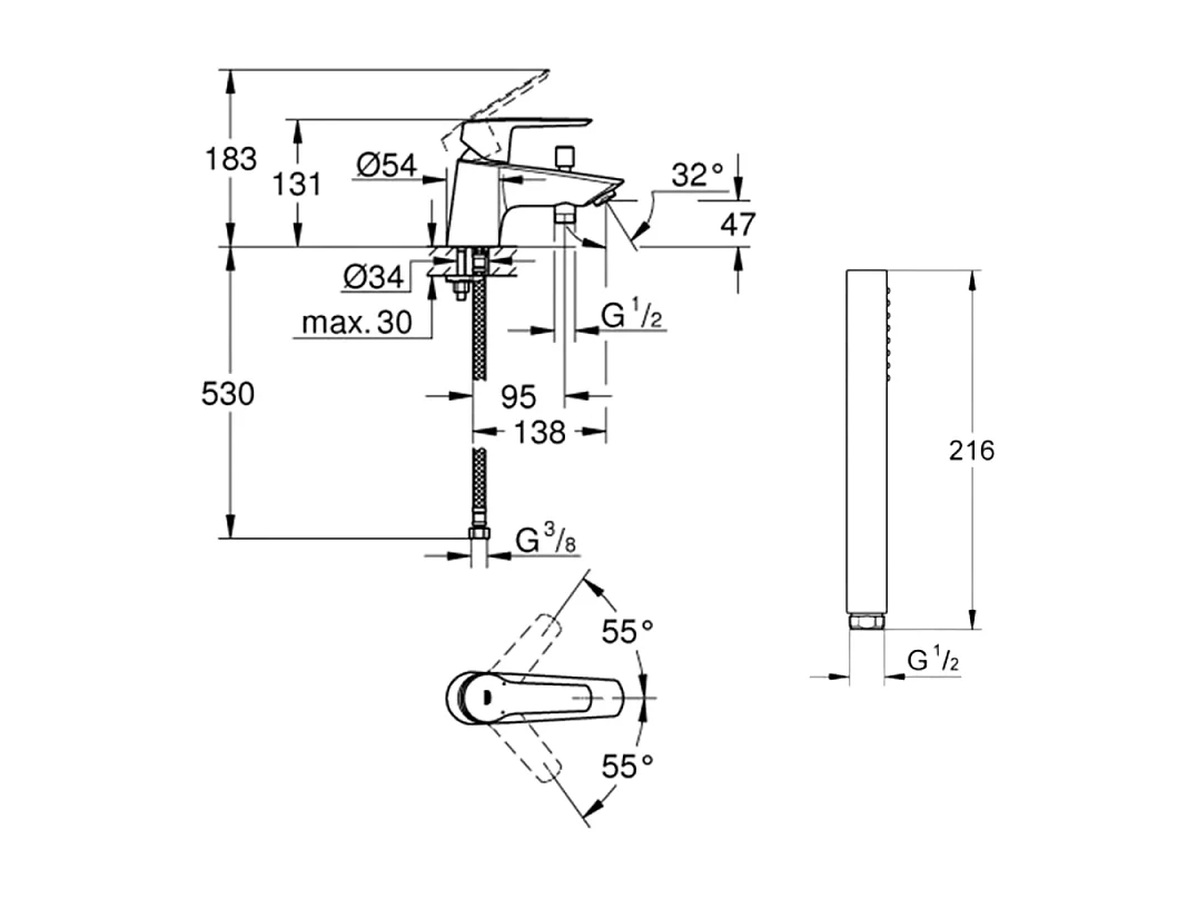 Pack mitigeur mécanique bain douche GROHE GROHE Start Quickfix + Douchette 1 jet Vitalio Get Stick et flexible