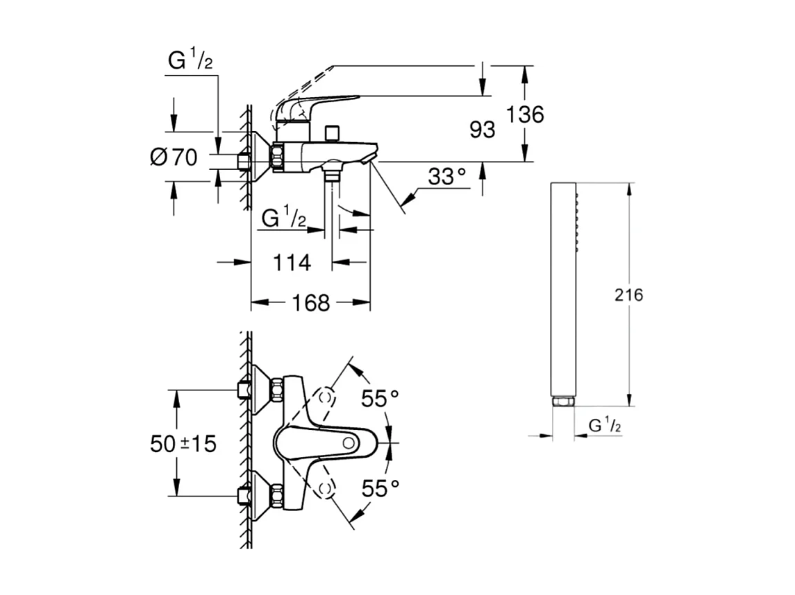 Pack mitigeur mécanique bain douche GROHE Start Loop + Douchette 1 jet Vitalio Get Stick et flexible