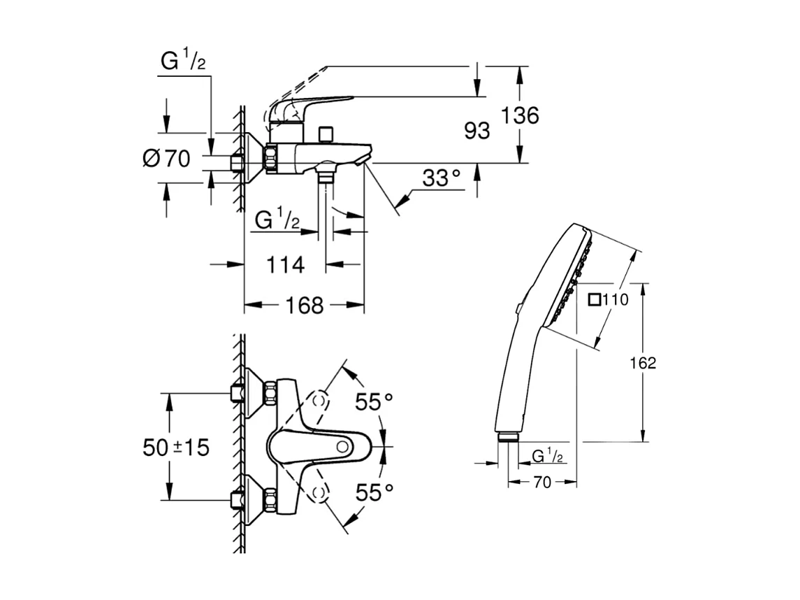 Pack mitigeur bain douche GROHE Swift + Douchette 2 jets Vitalio Comfort 110 + Flexible