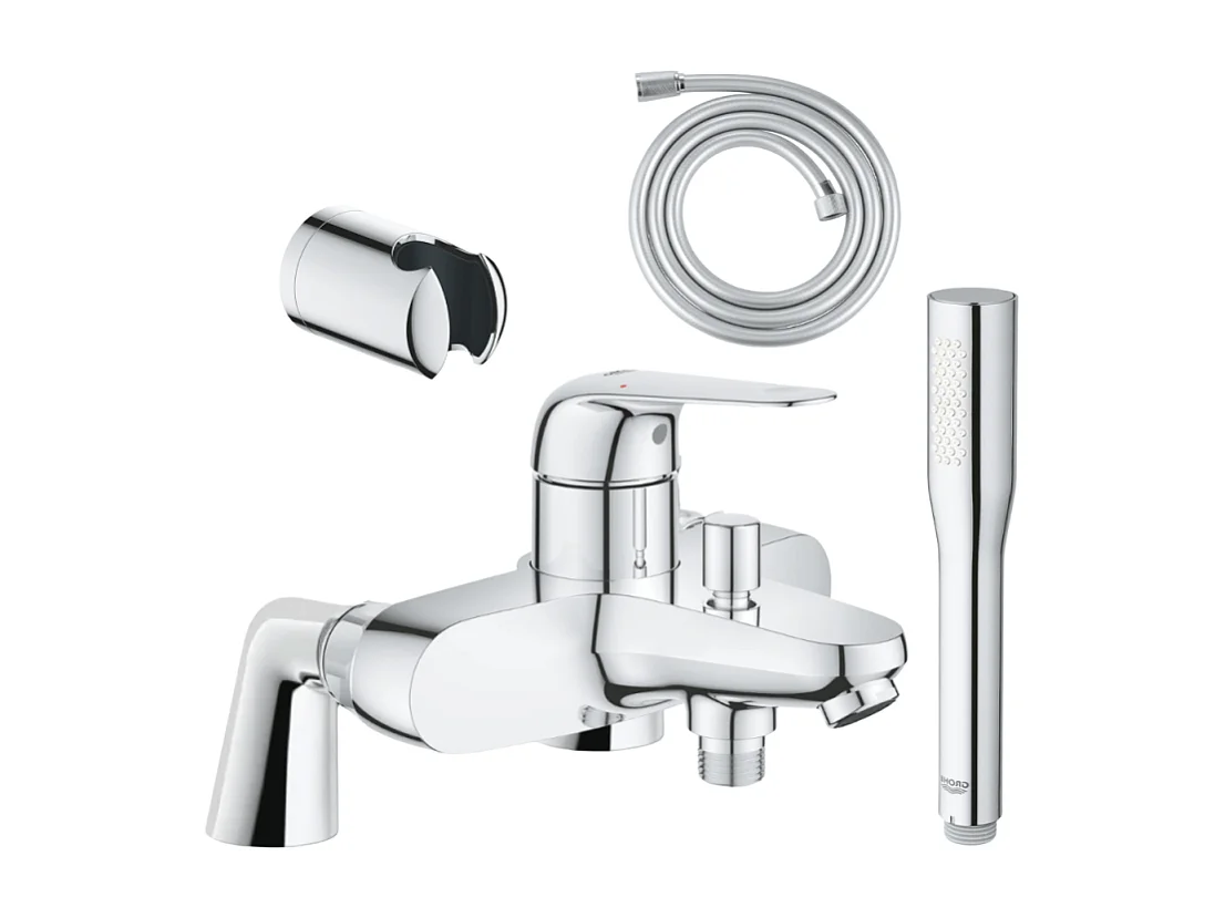 Pack mitigeur mécanique GROHE Swift avec colonnettes + Douchette 1 jet Vitalio Get Stick + Flexible 1750 mm