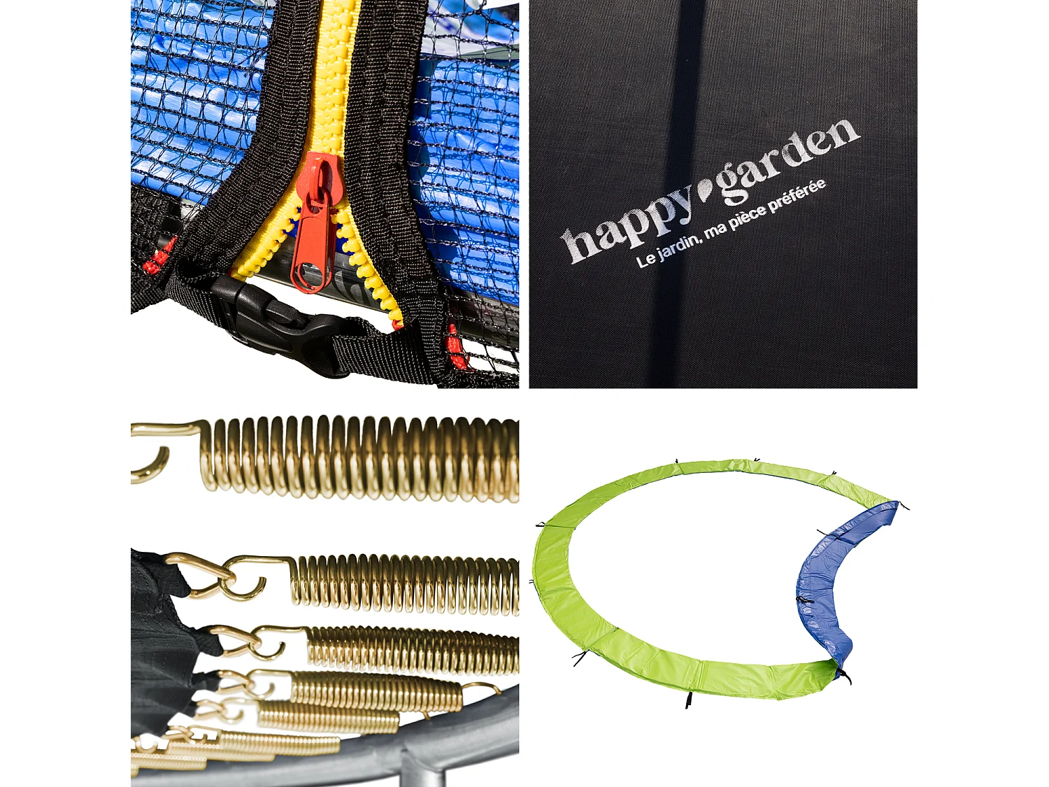 Trampoline 180cm réversible bleu / vert CAIRNS + filet, échelle, bâche et kit d'ancrage - HAPPY GARDEN