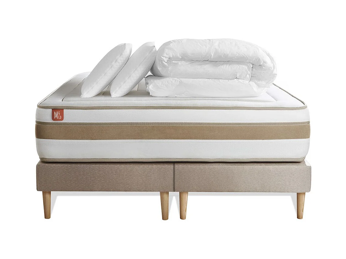 Pack prêt à dormir matelas LE RAFFINÉ 200x200cm Ressorts ensachés + Mémoire de forme BioVisco + double sommiers Beige