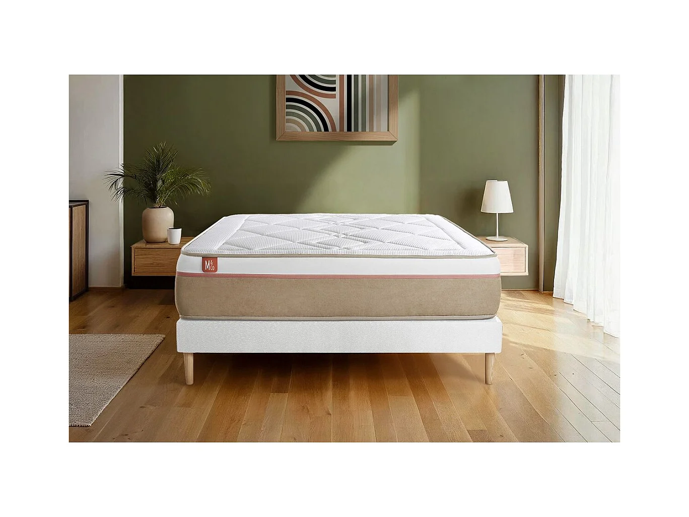 Pack prêt à dormir matelas LE SOYEUX 180x200cm Ressorts ensachés + Mémoire de forme BioVisco + sommier kit Blanc
