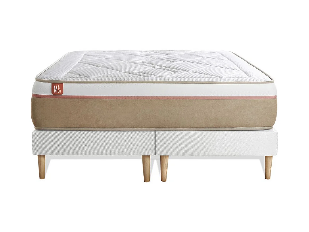 Pack prêt à dormir matelas LE SOYEUX 200x200cm Ressorts ensachés + Mémoire de forme BioVisco + double sommiers Blanc