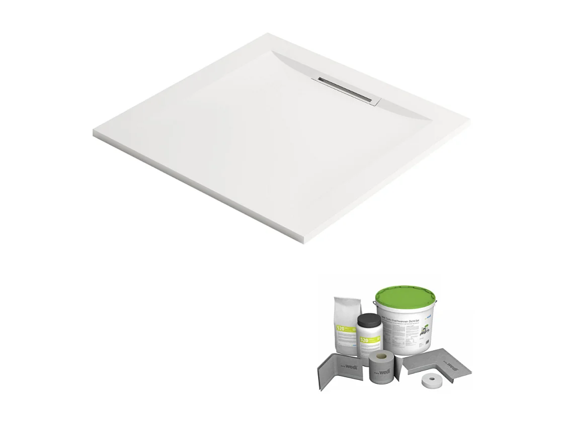 Pack receveur de douche antidérapant 80 x 80 JACOB DELAFON Flight Pure carré blanc + Kit d'étanchéité WEDI + Pieds