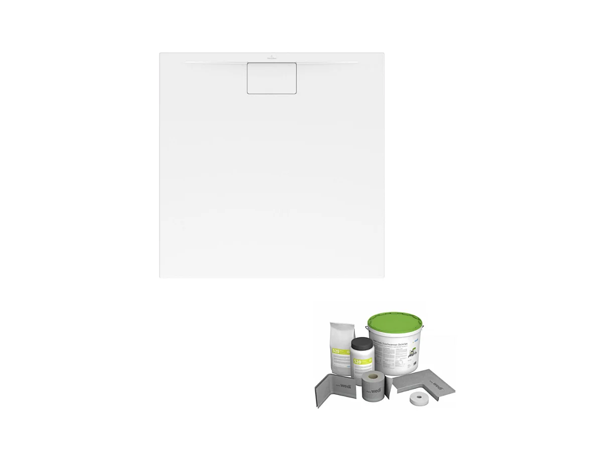 Pack receveur de douche antidérapant 90 x 80 VILLEROY ET BOCH Architectura Metalrim rectangle blanc + Kit d'étanchéité WEDI