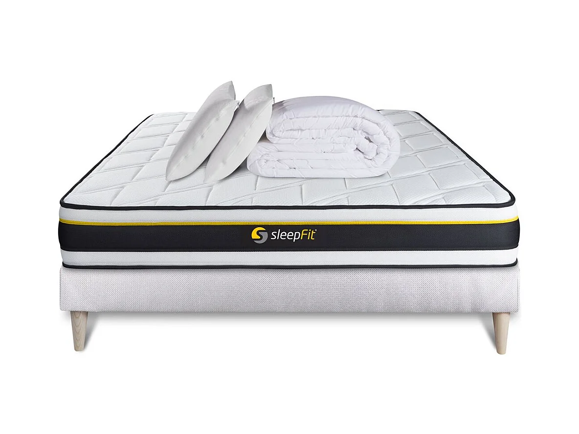 Pack sommier + matelas SOFT 160x200 + 2 oreillers mémoire de forme + Couette Percale