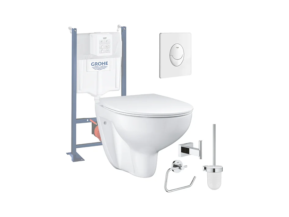 Pack WC sans bride Bau Ceramic avec abattant slim + Bâti support WC Rapid SL + plaque de commande Start blanc alpin + Accessoires