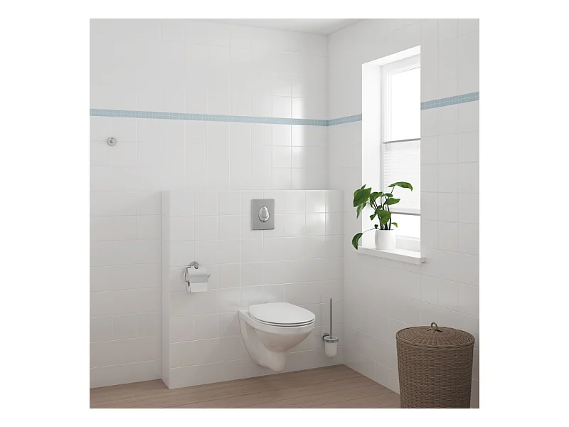Pack WC sans bride Bau Ceramic avec abattant slim + Bâti support WC Rapid SL + plaque de commande Start chromé + dérouleur