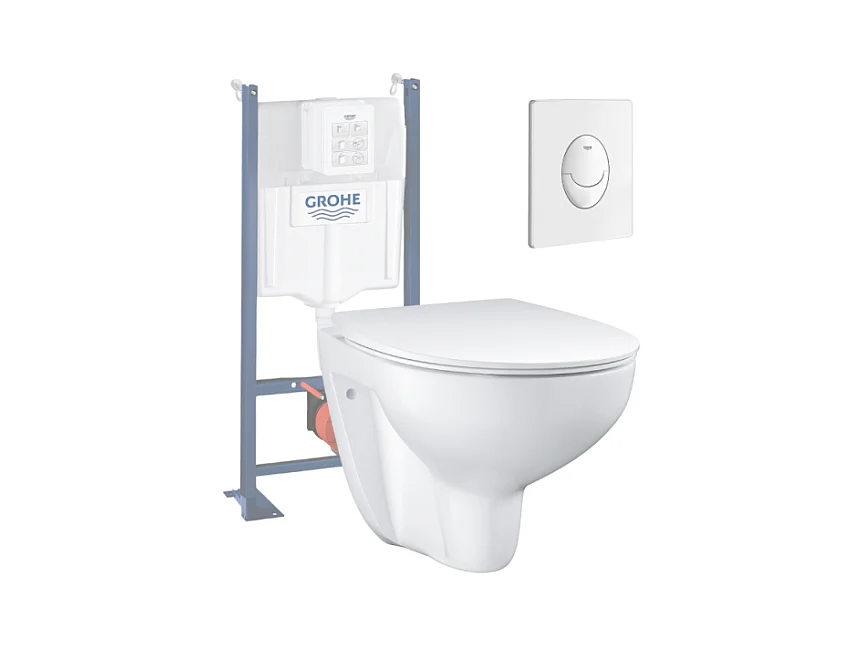 Pack WC sans bride Bau Ceramic Slim + abattant + Bati support autoportant + Plaque commande ovale blanc