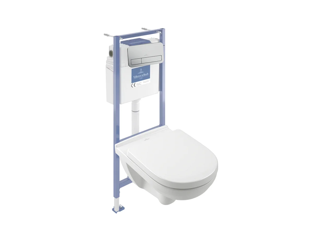 Pack WC sans bride VILLEROY ET BOCH O novo abattant frein de chute + bâti-support sol et mur Viconnect PRO + plaque Chromé mat