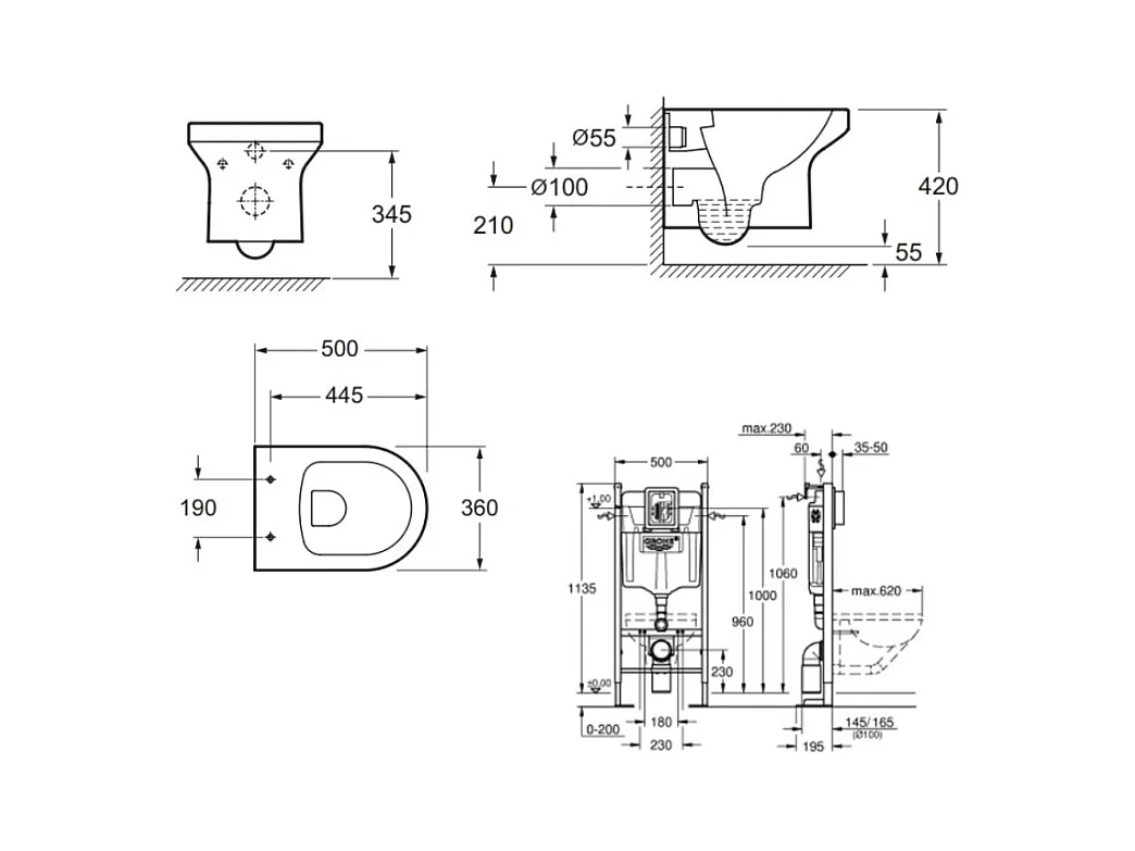 Pack WC suspendu sans bride + abattant + Bâti support + Even Plaque de commande WC carré chromé