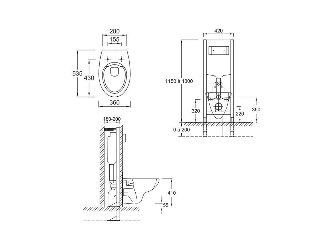 Pack WC suspendu + bati support + abattant thermodur et plaque de commande blanche Jacob Delafon