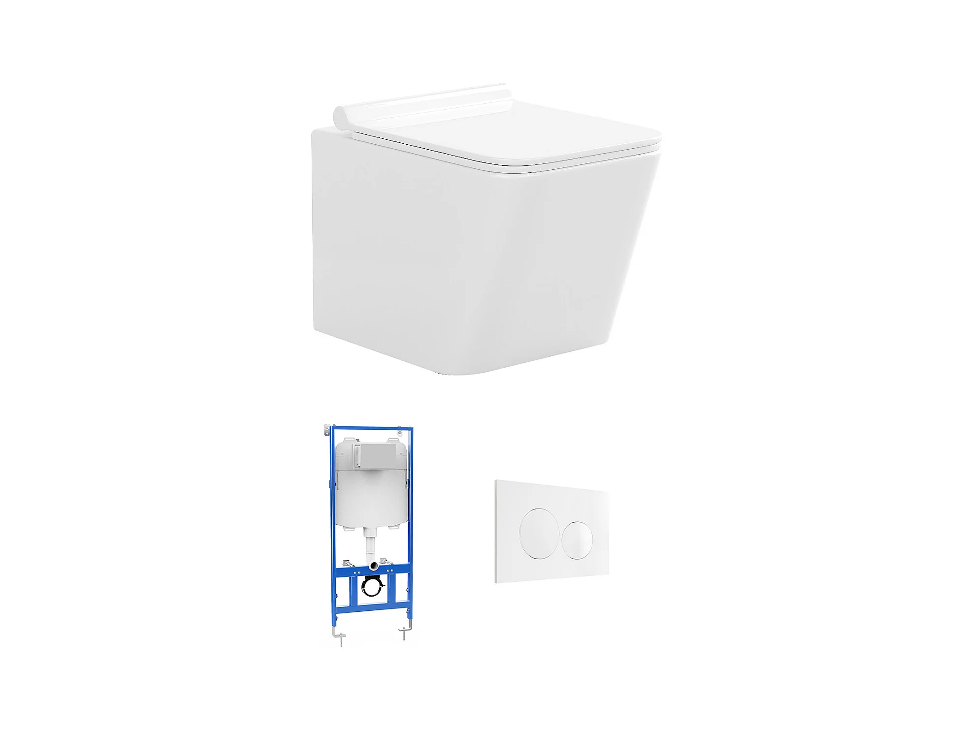 Pack WC suspendu blanc avec bâti-support et plaque de déclenchement blanche ronde - CLEMONA