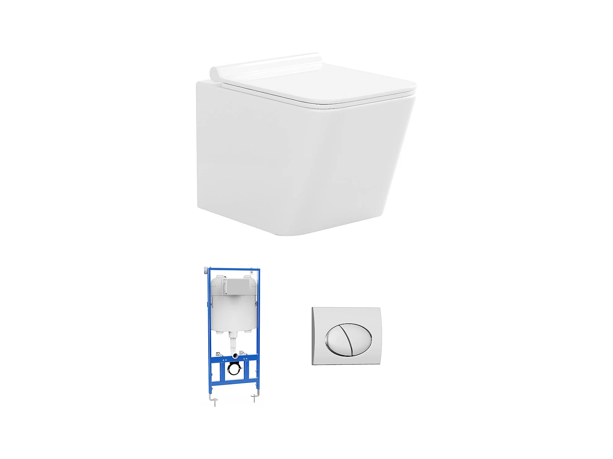 Pack WC suspendu blanc avec bâti-support et plaque de déclenchement chrome ovale - CLEMONA