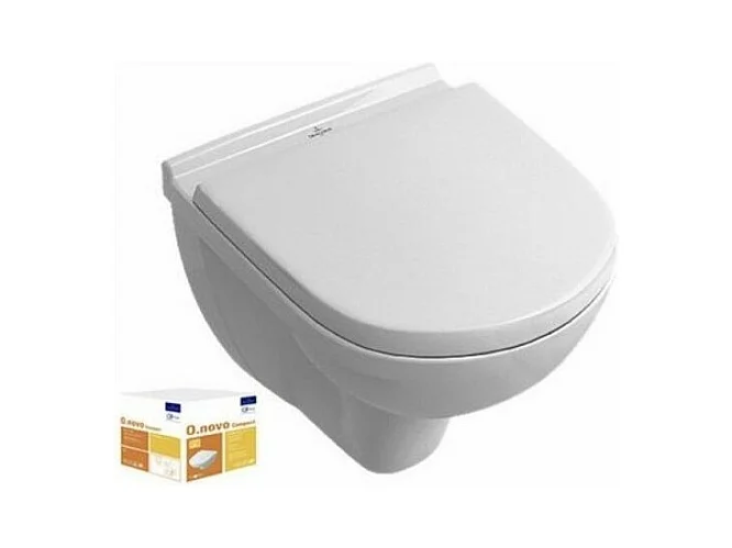 Pack WC suspendu compact sans bride VILLEROY ET BOCH O Novo + abattant + plaque chromée + bâti Grohe