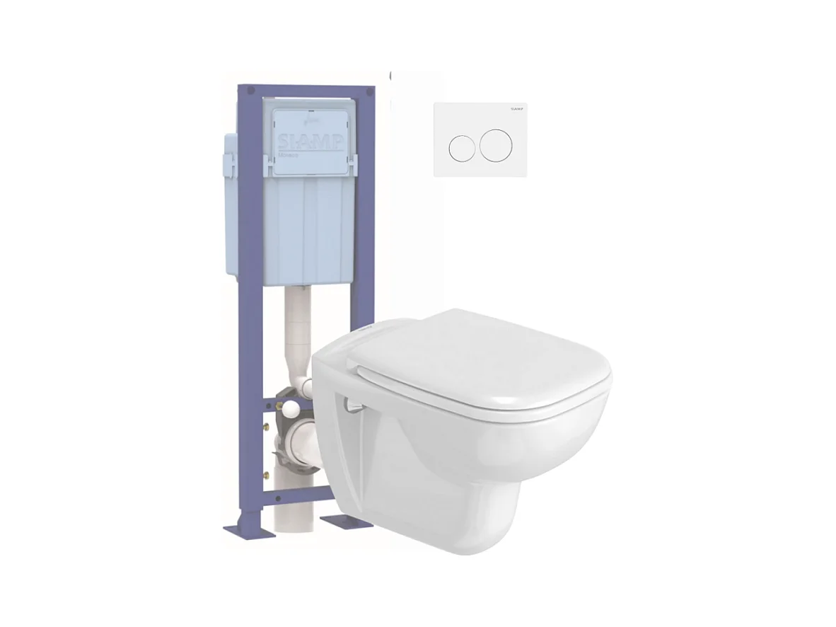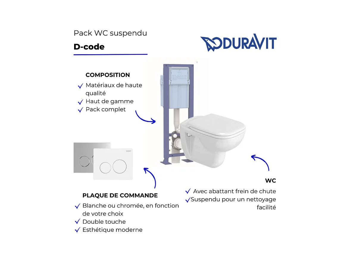 Pack WC suspendu DURAVIT D-code avec abattant + bati support SIAMP + Plaque de commande blanche