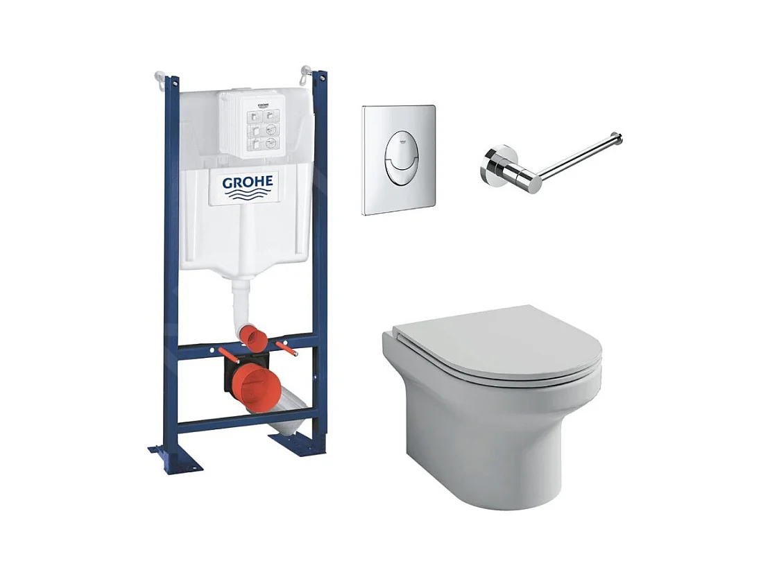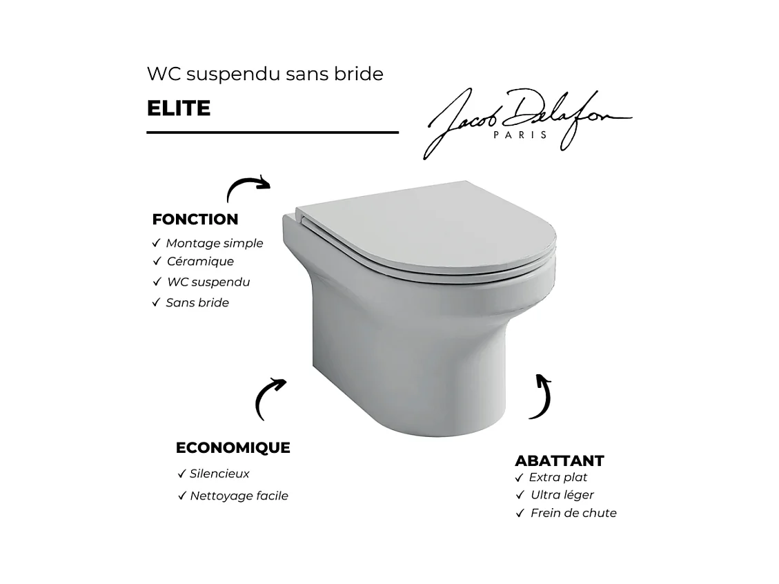 Pack WC suspendu sans bride Jacob Delafon Elite + Bâti support wc Grohe + plaque de commande chromé