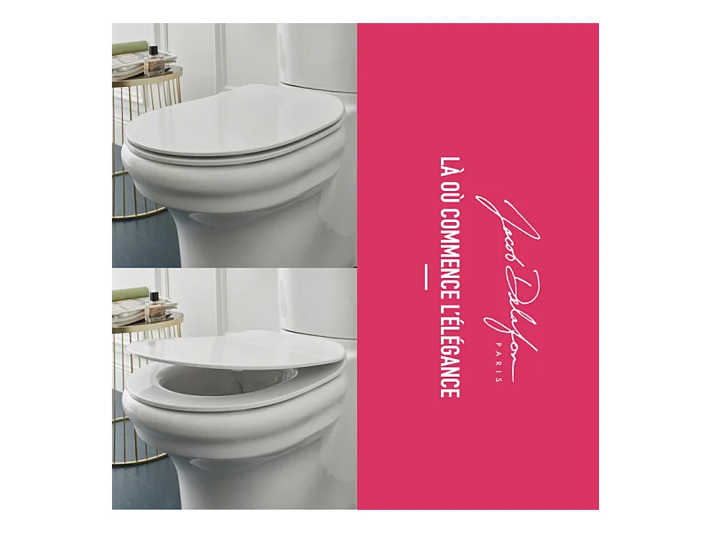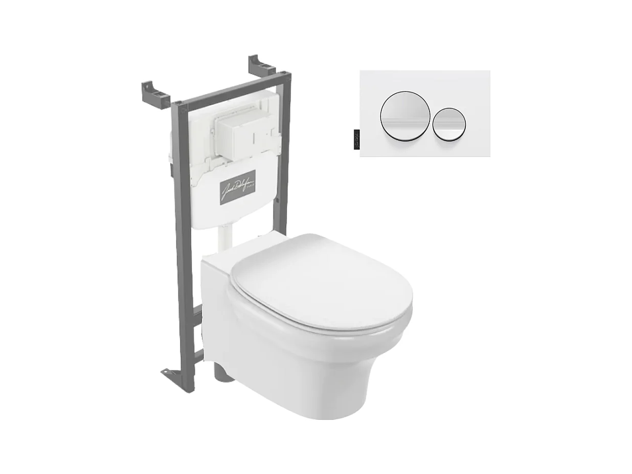 Pack WC suspendu sans bride à économie d'eau JACOB DELAFON Cléo 1889 + abattant + bâti-support + plaque ronde blanche