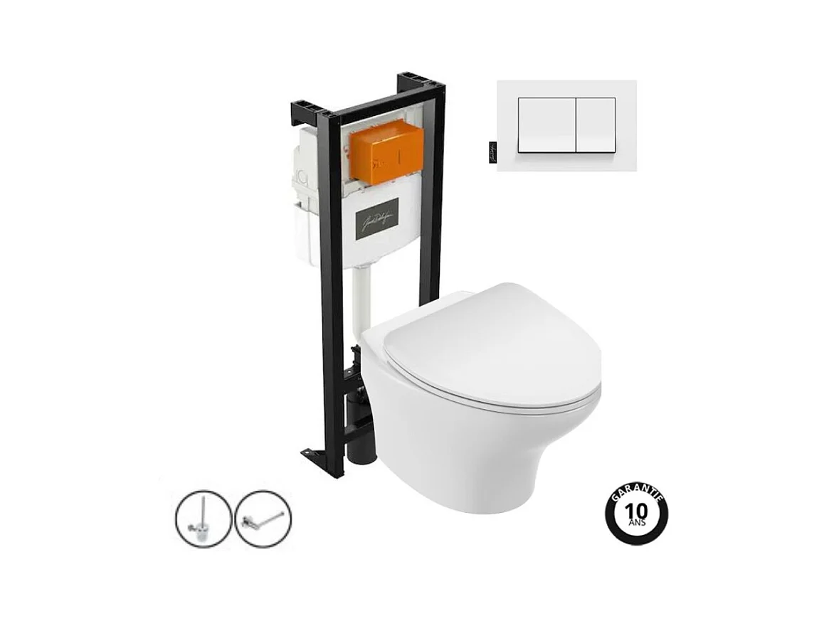Pack WC suspendu sans bride compact JACOB DELAFON Nouvelle vague+ bâti-support + plaque Blanc brillant + accessoires