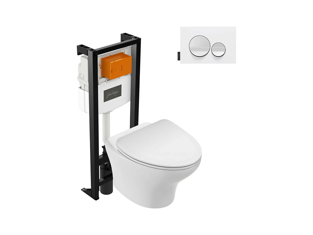 Pack WC suspendu sans bride compact JACOB DELAFON Nouvelle vague+ bâti-support + plaque Blanc brillant/Blanc mat