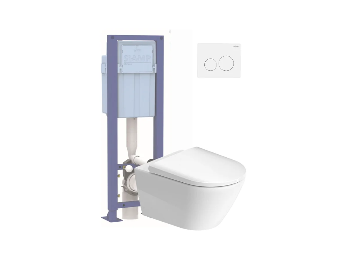 Pack WC suspendu sans bride DURAVIT D-Neo avec abattant frein de chute + bati support SIAMP + Plaque de commande blanche