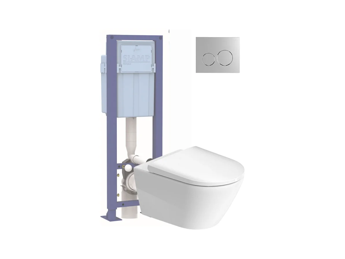 Pack WC suspendu sans bride DURAVIT D-Neo avec abattant frein de chute + bati support SIAMP + Plaque de commande chromée