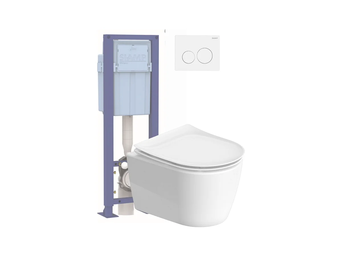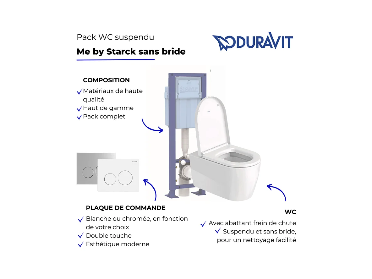 Pack WC suspendu sans bride DURAVIT Soleil by Starck avec abattant frein de chute + bati support SIAMP + Plaque blanche