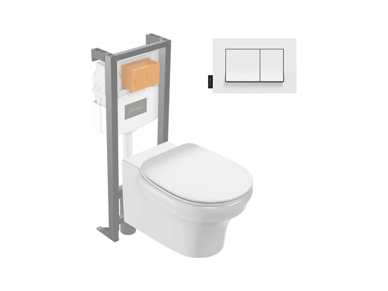 Pack WC suspendu sans bride JACOB DELAFON Cléo 1889 + abattant + bâti-support + plaque rectangle blanche