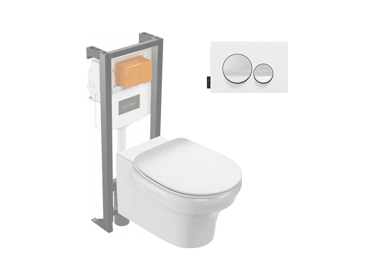 Pack WC suspendu sans bride JACOB DELAFON Cléo 1889 + abattant + bâti-support + plaque ronde blanche