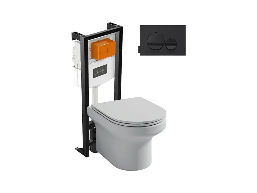 Pack WC suspendu sans bride JACOB DELAFON Elite + bâti-support + plaque Noir brillant/Noir mat
