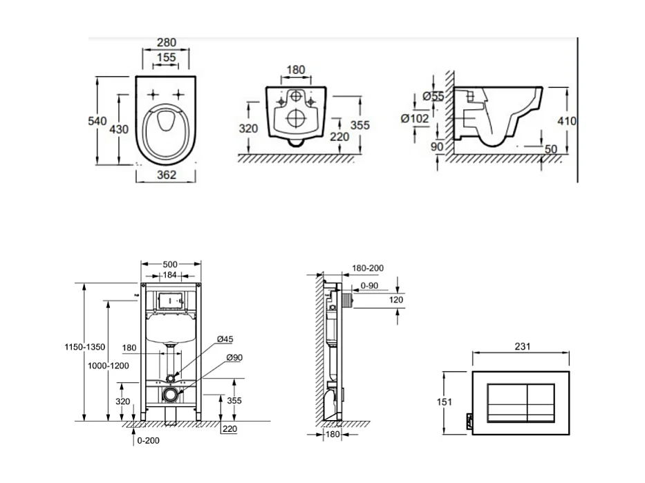 Pack WC suspendu sans bride JACOB DELAFON Odéon Rive Gauche + bâti support + plaque avec abattant standard