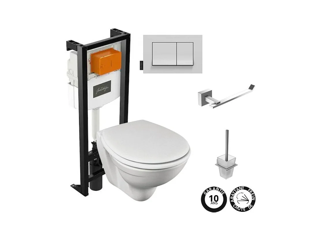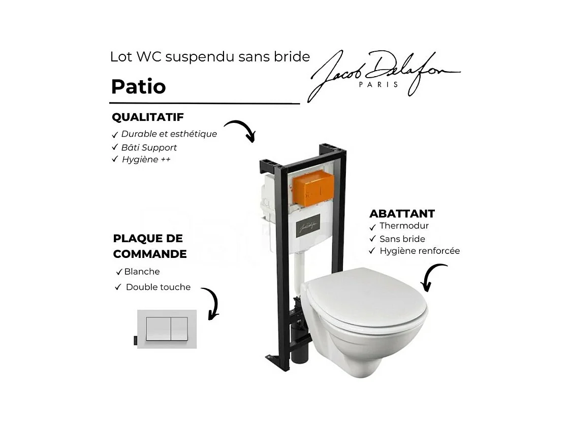 Pack WC suspendu sans bride JACOB DELAFON Patio + porte-balai + porte-rouleau Eo Moderne