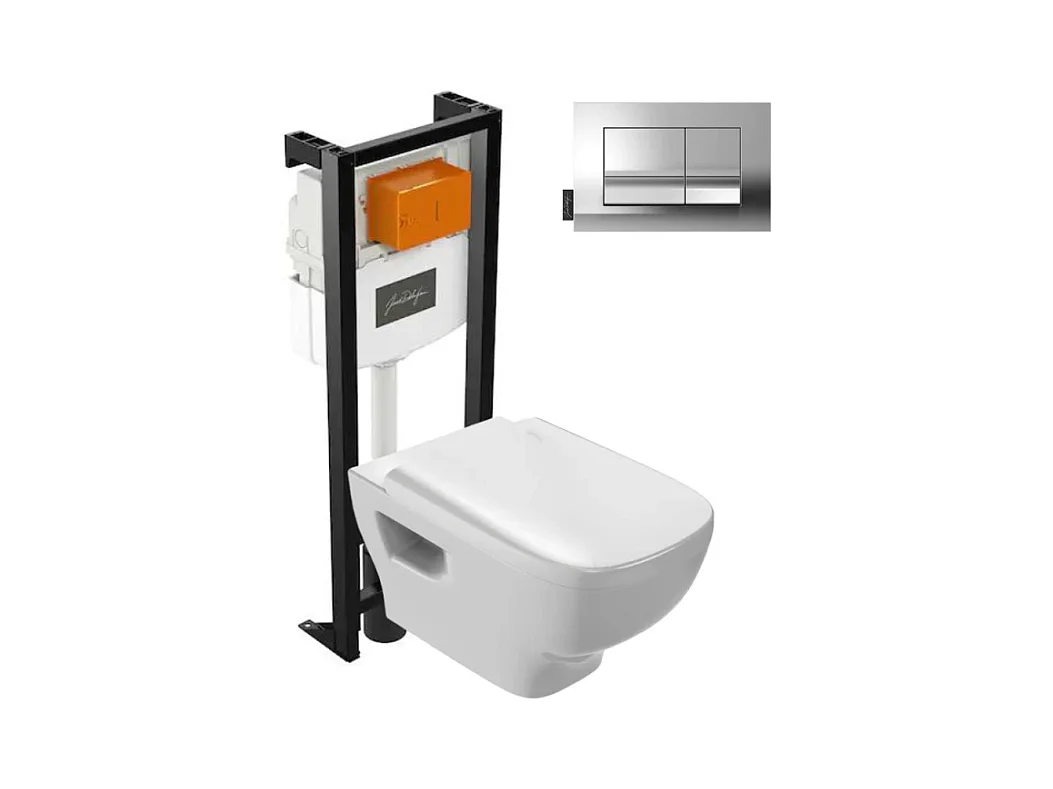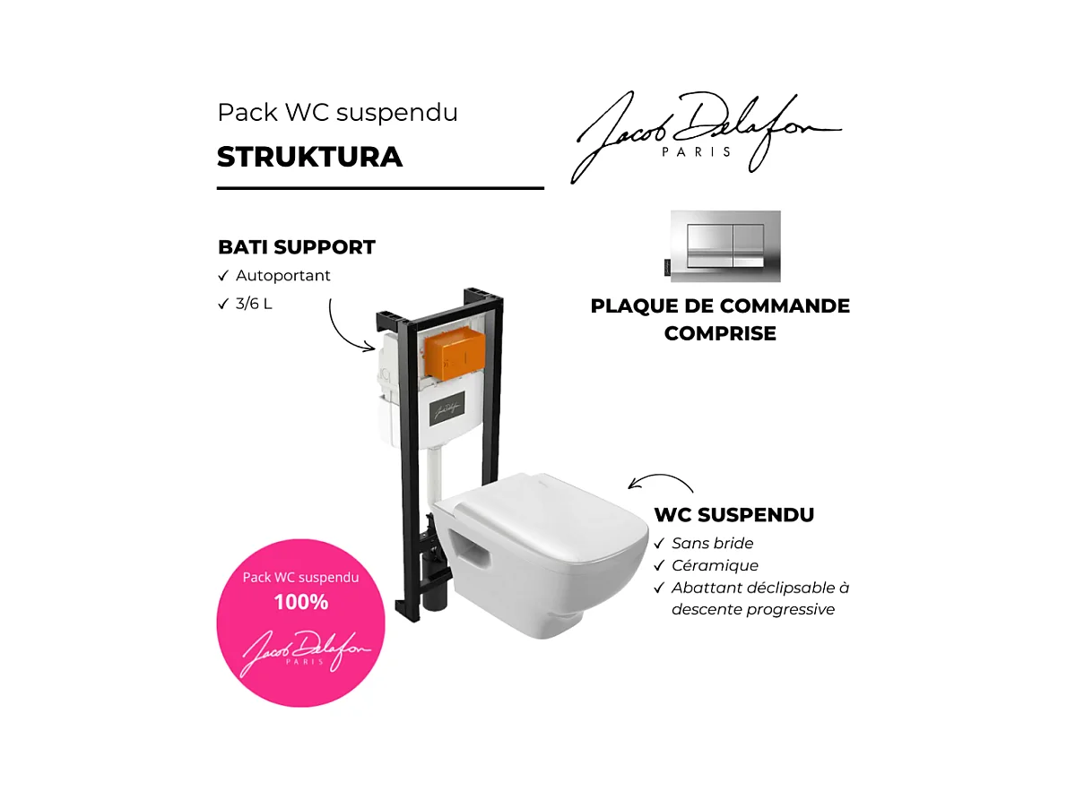 Pack WC suspendu sans bride JACOB DELAFON Struktura+ bâti-support + plaque Chrome