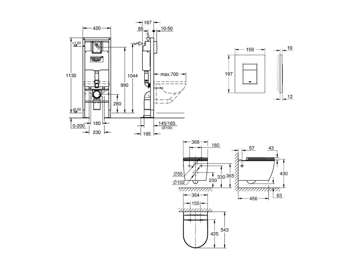 Pack WC suspendu sans bride Start Round Ceramic + abattant frein de chute + Bâti-support autoportant + Plaque carré blanc alpin
