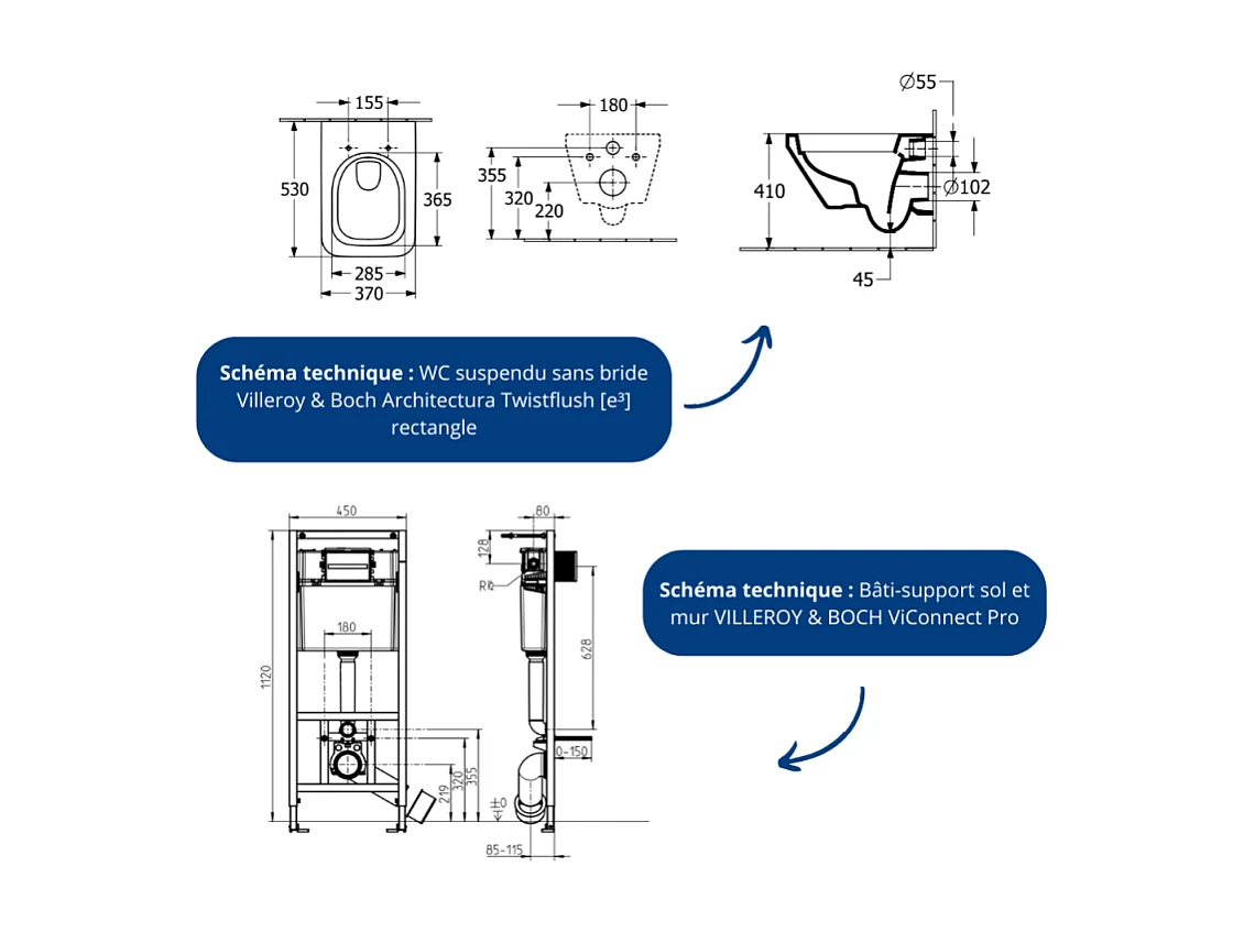 Pack WC suspendu sans bride Villeroy & Boch Architectura Twistflush [e³] rectangle + bâti-support sol et mur + plaque blanc