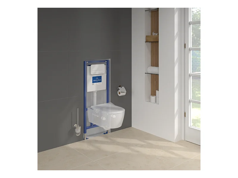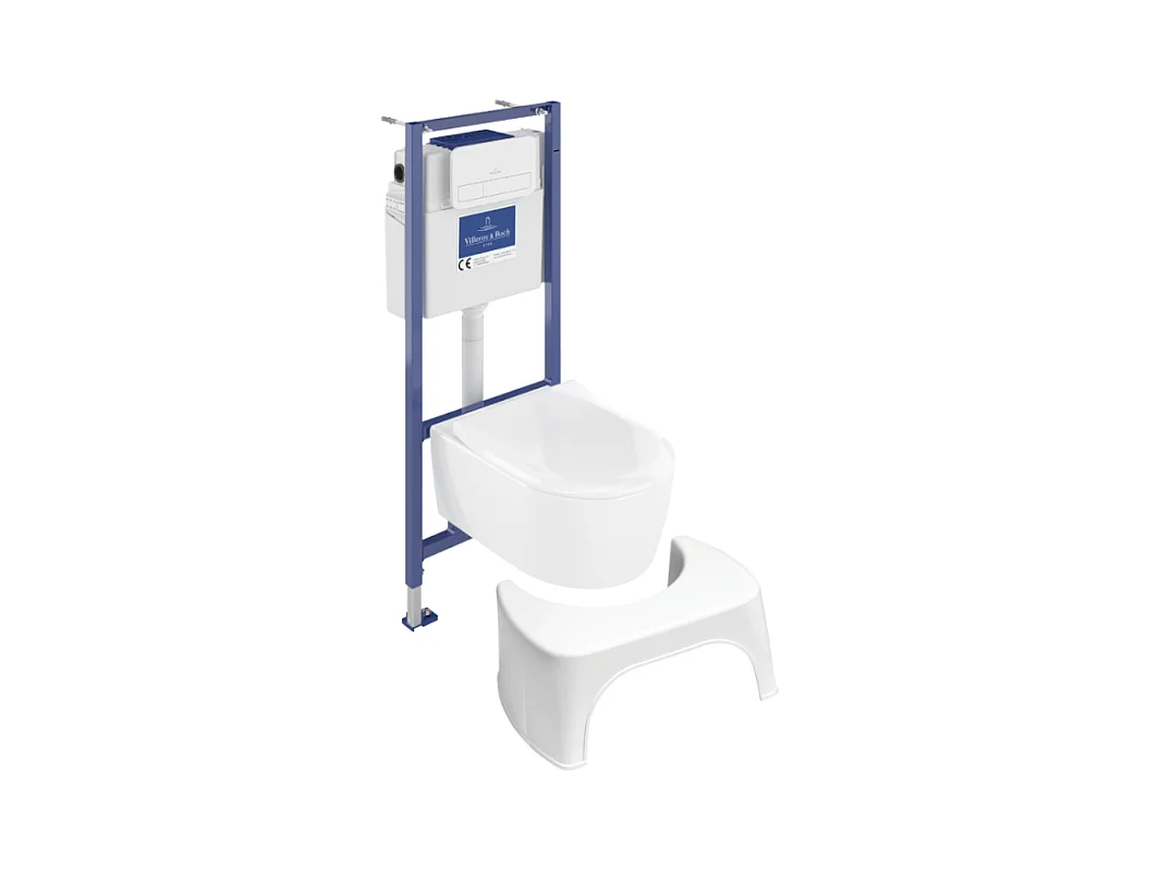 Pack WC sans bride VILLEROY ET BOCH Avento + Bâti support + abattant frein de chute + plaque blanche + Tabouret blanc