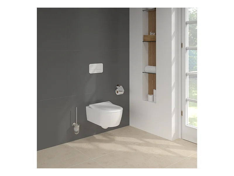 Pack WC sans bride VILLEROY ET BOCH Avento + Bâti support + abattant frein de chute + plaque chromée mat + Tabouret blanc