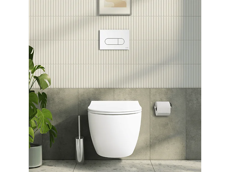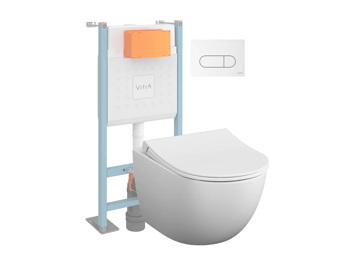 Pack WC suspendu VITRA Sento blanc mat + bâti autoportant V-Fix Core + Plaque Round Blanche