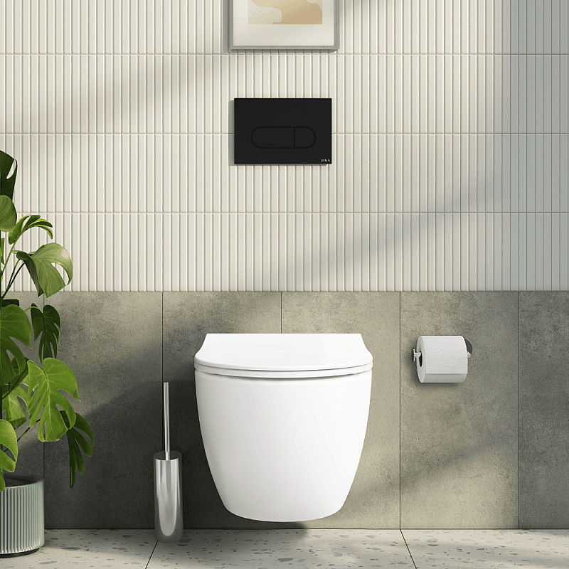 Pack WC suspendu VITRA Sento blanc mat + bâti autoportant V-Fix Core + Plaque Round noir mat