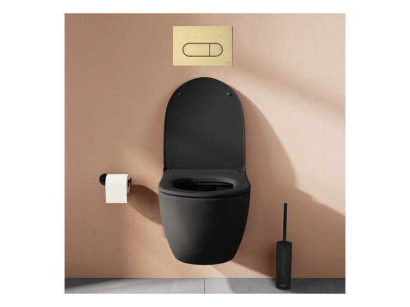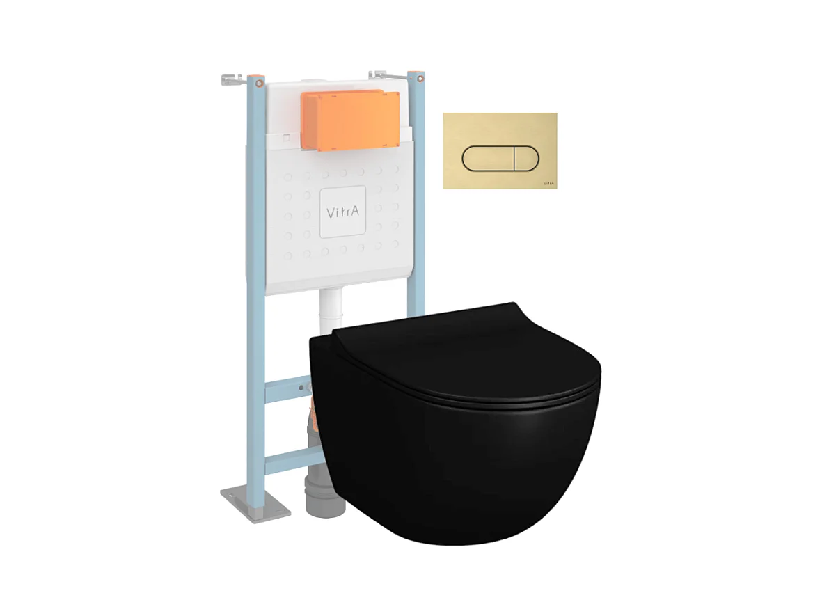 Pack WC suspendu Vitra Sento noir + bâti autoportant V-Fix Core + Plaque Round Or brossée
