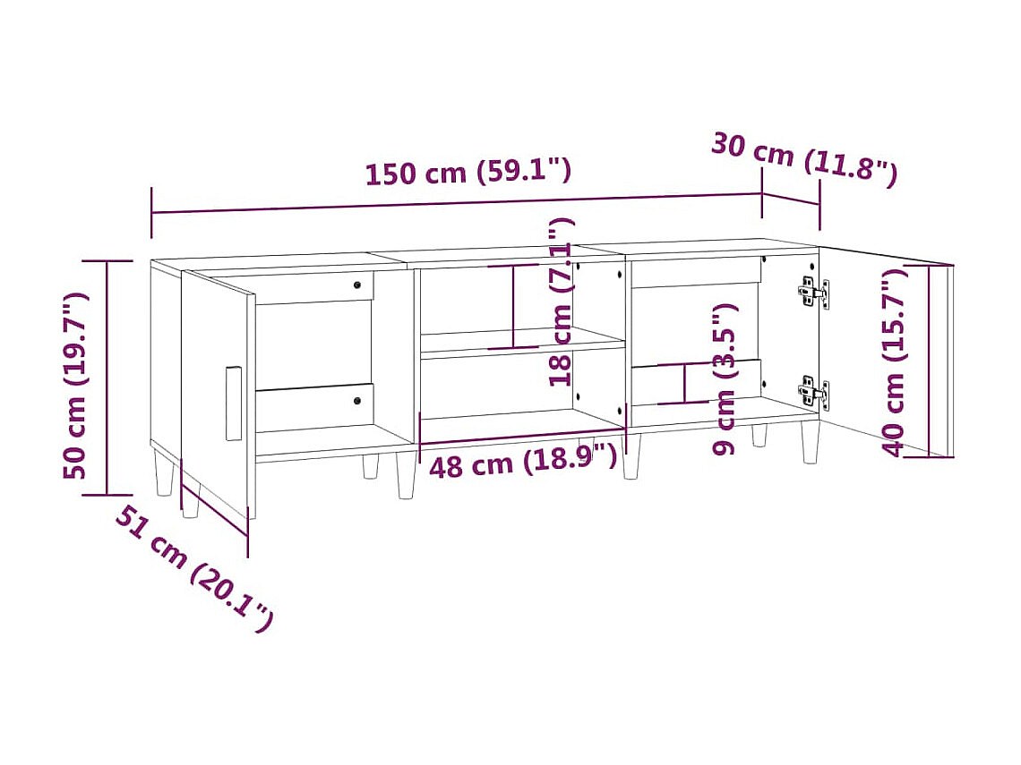 Padborg Meuble TV Blanc 150x30x50 cm Bois d'ingénierie