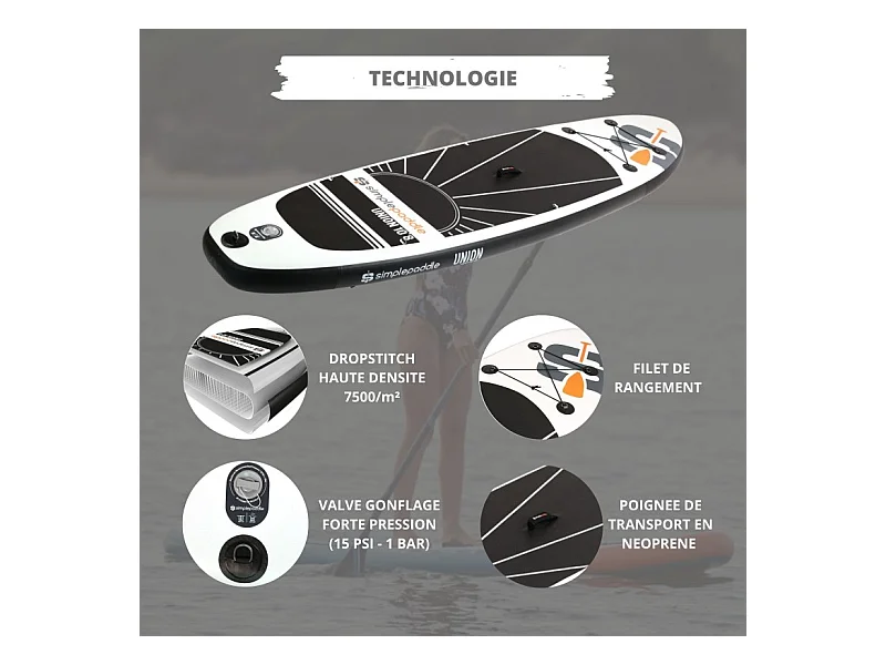 Paddle Gonflable UNION 10'8 32'' 6" (320 x 81 x 15 cm) avec Pagaie, Leash, Pompe et Sac de Transport