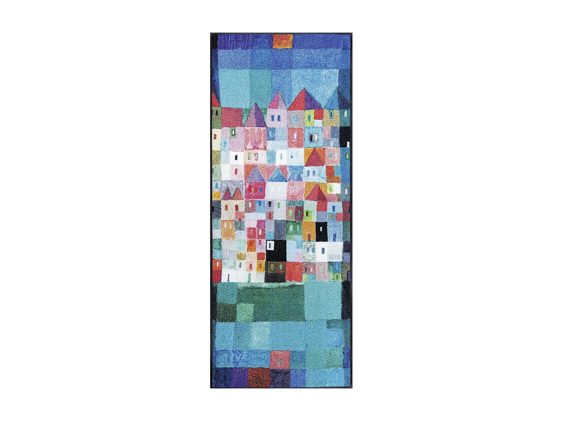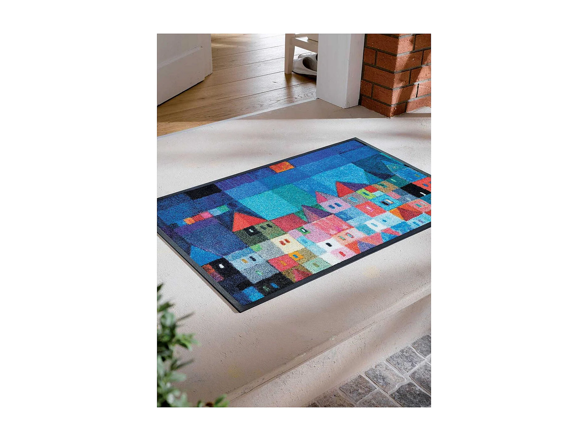 Paillasson 50x75 tissé motif fresque FULA bleu