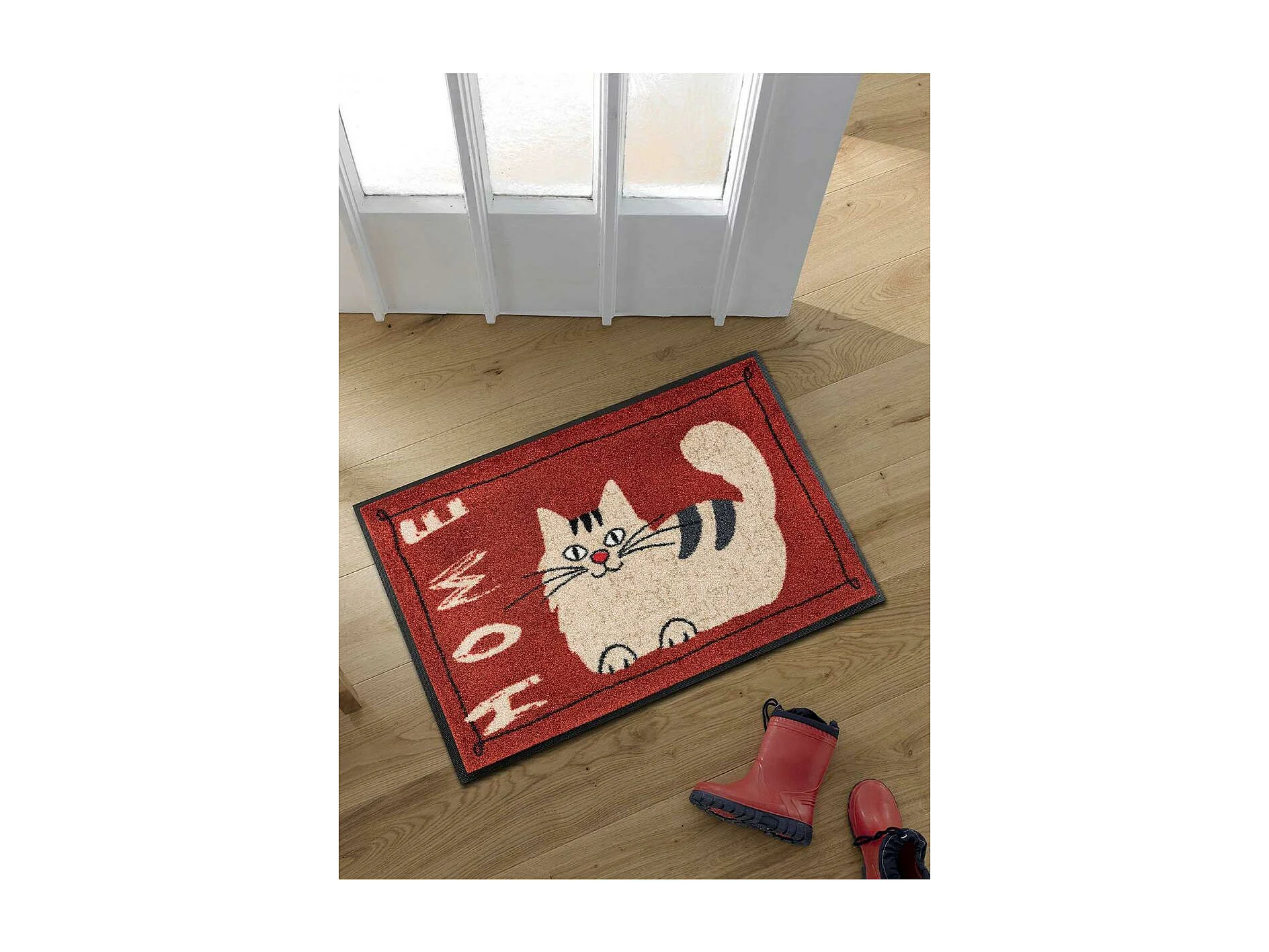 Paillasson 50x75 tissé motif animaux CATTY rouge