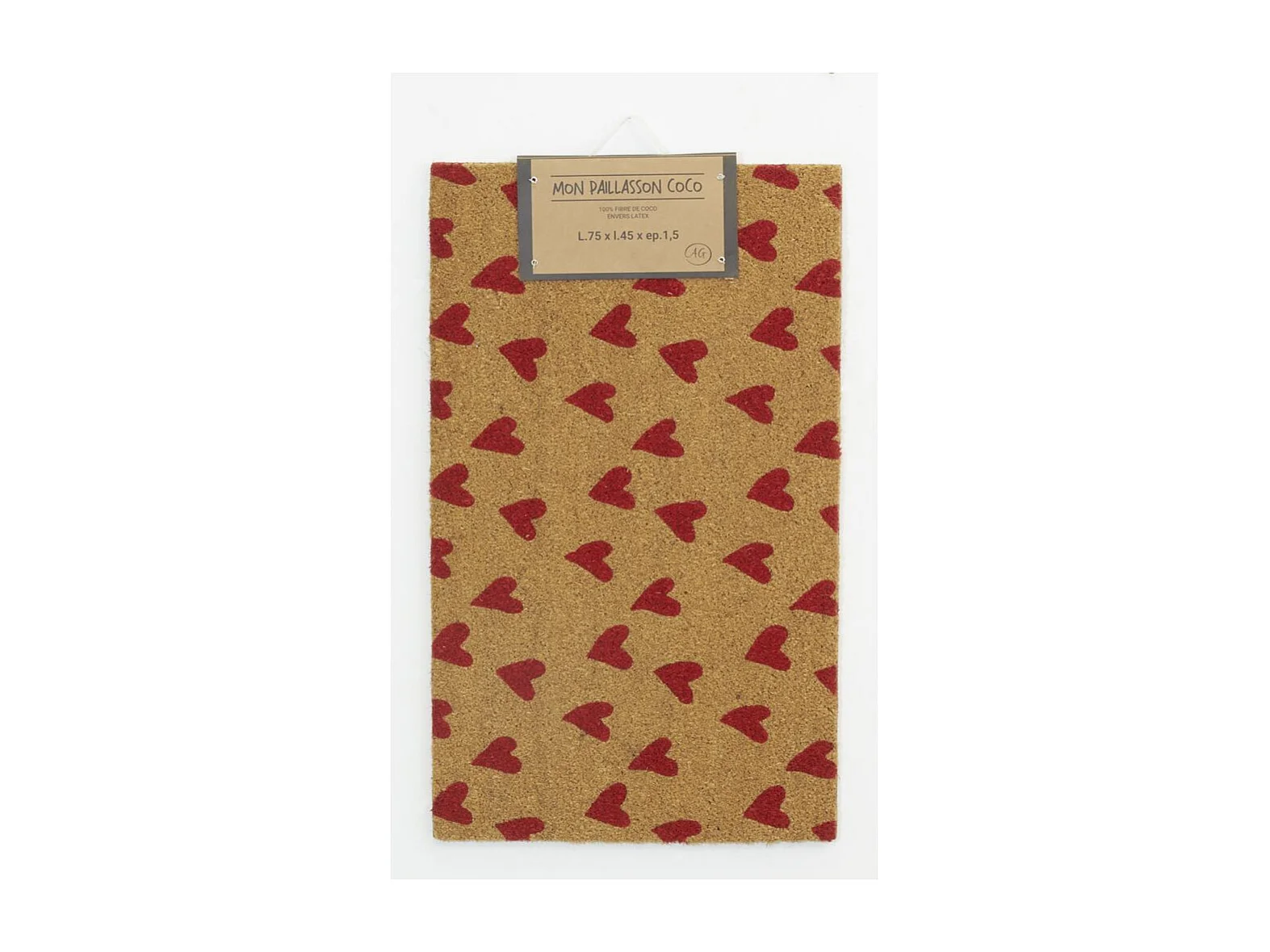 Paillasson coco intérieur extérieur 75 x 45 cm Coeurs imprimés rouges