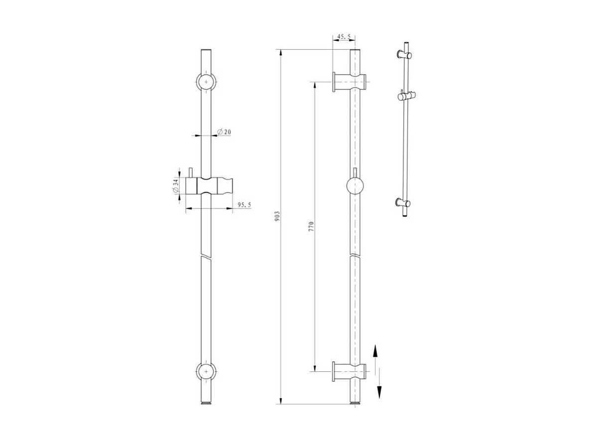 PAINI Douchette 1 jet Cox avec barre de douche noir brossé