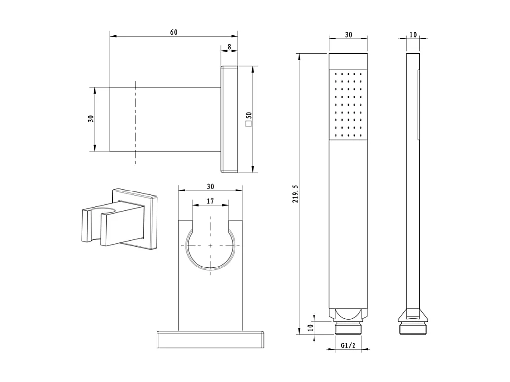 PAINI Douchette 1 jet Dax avec support gris acier